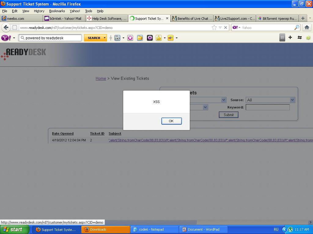# Exploit Title: ReadyDesk Cross Site Scripting